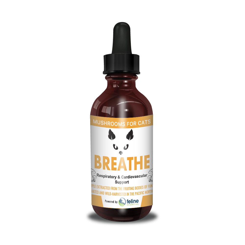 MycoCat Breathe is a premium respiratory and cardiovascular supporting mushroom tincture. This tincture is a water extracted blend of Cordyceps, Reishi, Artist Conk and Chaga, with Ashwagandha preserved in organic vegetable glycerin. Cultivated and wild-harvested in the Pacific Northwest, these mushrooms offer the powerful support your cat needs.
